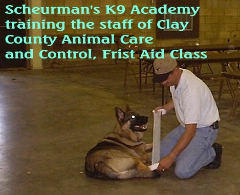 Scheurman’s K9 Academy offers dog training for ALL BREEDS and ALL AGES in Group classes, Private lesson format, and Board and Trains often referred to as Doggie Boot Camp, for Basic Obedience, Intermediate Obedience, Competition Obedience for both the American Kennel Club and the United Kennel Club in Novice, Open, Utility and Rally. Scheurman's K9 Academy also offers dog training in Personal Protection, Therapy Dogs, Service Dogs as defined under the Americans with Disabilities Act, Search and Rescue, Cadaver Recovery, Schutzhund, KNPV, NVBK, French Ring. We further offer Canine First Aid and CPR classes, using our canine manikin, Scruffy.